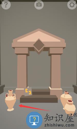 1、点击红框箭头指向的左侧陶罐,调查祭坛周围线索。