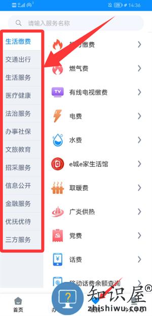 3、在便民页面,可按需选择生活缴费、交通出行等各项分类。