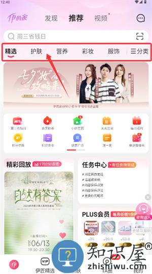 1、进入应用推荐首页,选择护肤等商品分类浏览感兴趣的内容。