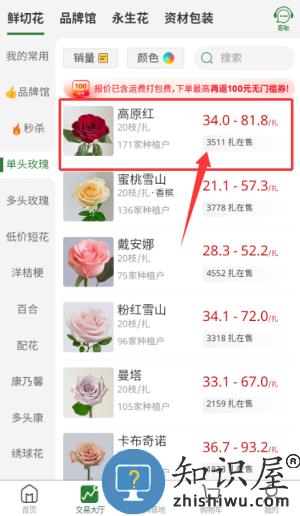 3、点击极速下单按钮,选购对应规格花材。