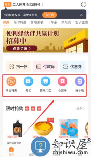 3、首页提供今日特惠、外卖服务、门店查找、心愿单及智能货柜等功能。