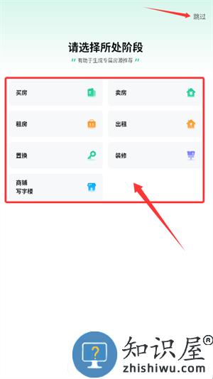 1、进入应用后选择购房或租房等需求阶段,也可直接跳过该步骤。