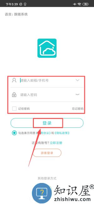 1、在智能硬件应用中点击"同意"服务协议,进入登录界面。