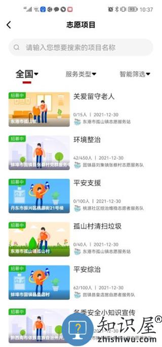 2.项目搜索,搜寻近期志愿项目,随时报名做志愿。