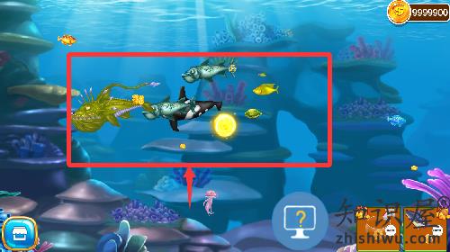 2、让你的体积增长一点之后,你可以试着吞下大鱼,让你的体型变得更大。