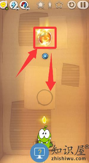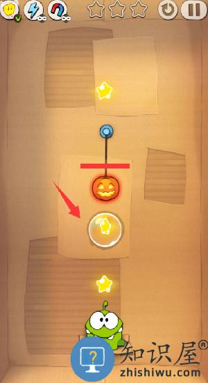 1、这关先切割绳子南瓜就掉进泡泡。