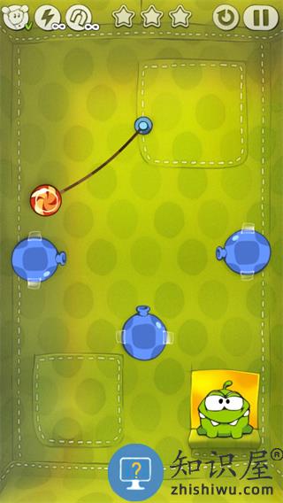 5、割开最后一根绳子,糖果就会掉入青蛙的口中,注意需要提前预判糖果的位置。