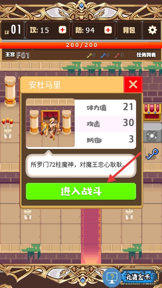 竖版像素风格的冒险rpg游戏,以《魔塔》为蓝本,加入了丰富的剧情,新增了对话模式而且游戏中无任何收费的项目在,游戏属于单机剧情游戏,玩家将扮演成一名勇士前往神秘的魔塔中进行探险,你需要释放出炫酷的技能把你前面的敌人全部打倒,获得稀有材料道具,升级装备,拥有更强的战斗力,和最终的魔王热血对决,救出被困的公主。