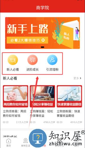 4、商学院栏目提供新手入门指引、进阶提升课程及粉丝引流技巧等内容。