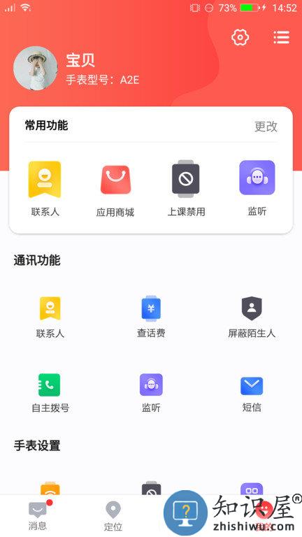 1、手机app连接手表后以后打开读书郎儿童手机手表APP的主页,选择设置进入。