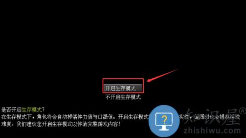 2、选择红框标注的开启生存模式按钮,增强游戏挑战性。