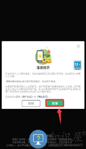 1、点击温馨提示里的同意并继续。