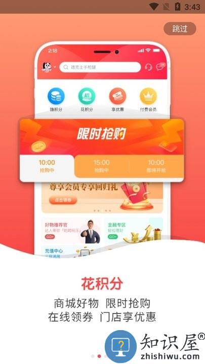 ·花积分,商城好物,限时抢购,在线领券,门店享优惠;