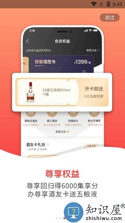 ·尊享权益,尊享回归得6000集享分,办尊享酒友卡送五粮液;