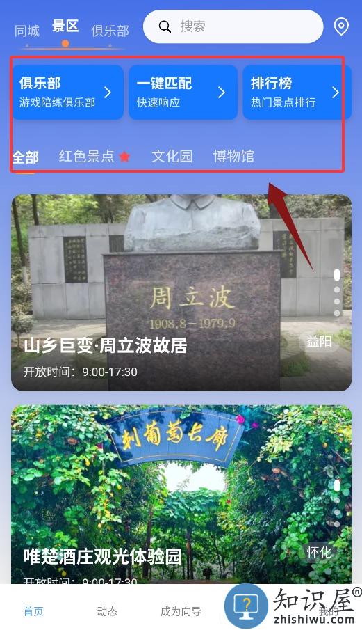 2、首页包含俱乐部查询、智能匹配、景点榜单与全部景点浏览。