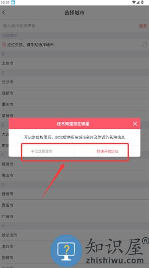 1、若定位未成功,可手动选择城市或重新开启定位功能确定所在地。