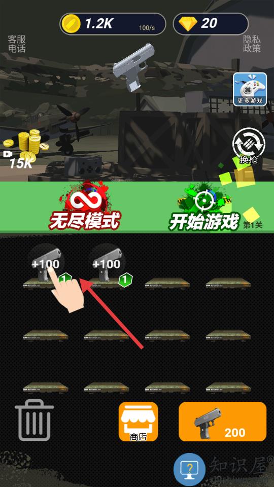 1、通过合并相同枪支来合成更高级的武器以提升战斗力。