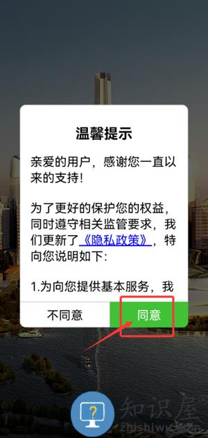 2、启动应用后,请阅读温馨提示弹窗内容,并点击同意按钮继续。