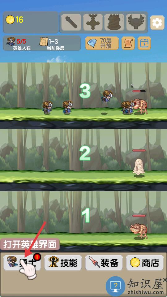 1、招募并培养多种职业勇者组建专属队伍进行闯关。