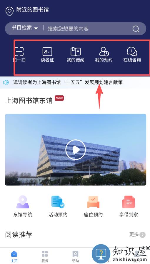 SNS服务则可以通过新浪微博,分享图书信息或者感兴趣的讲座和展览。