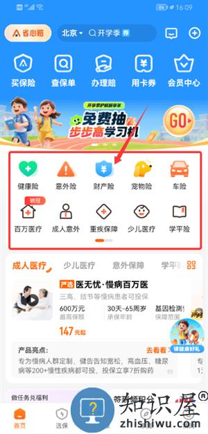 可以在首页、产品菜单栏中选购精选保险,并且在注册时可获赠保险折扣券。