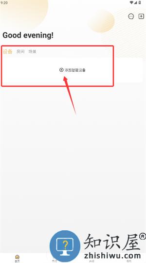 4、返回主界面,在智能硬件区域点击“添加设备”,即可开始配置新设备。
