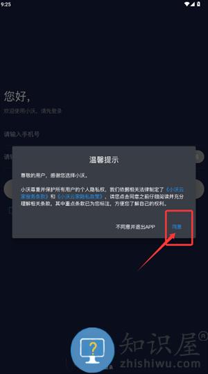 1、启动小沃应用后,请在隐私协议弹窗中点击“同意”按钮。