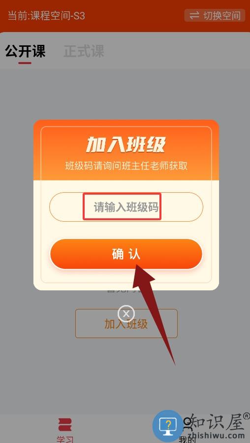 4、加入班级时输入对应的班级邀请码,点击确认即可完成。