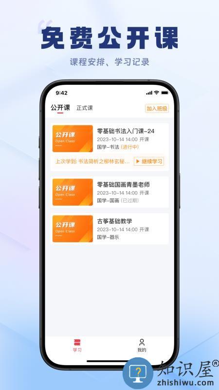 3、学习界面分为公开课与正式课,用户可自由选择观看。