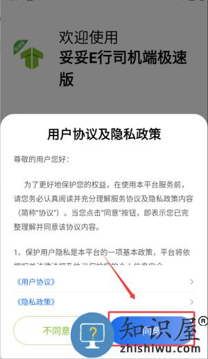 1、首先点击同意并进入应用,开启您的专车司机注册流程操作界面。
