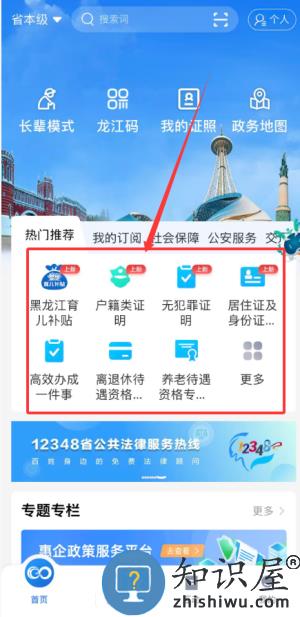 3、首页提供了黑龙江省育儿补贴政策申领户籍相关证明开具及无犯罪记录证明在线申请等高频民生服务入口。