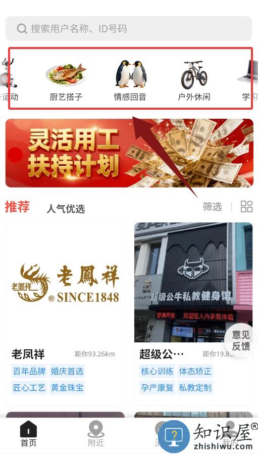 2、首页上方设有厨艺搭子、情感回音、户外休闲及学习等专区。