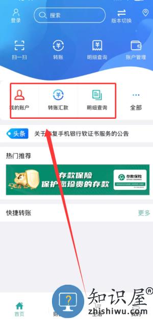 转账汇款功能包括:行内转账、跨行转账、预约转账、转账结果查询、常用收款人管理。