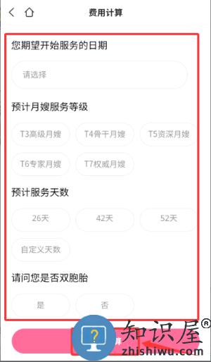 3、选定服务日期等级等信息,点击立即计算查看费用。