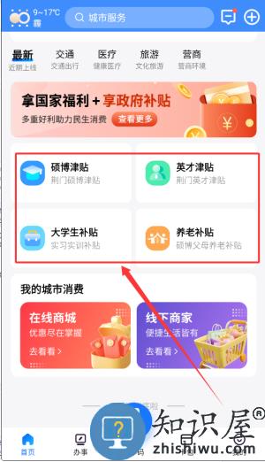 1、首页集中展示了多项人才与民生补贴政策,包括硕博人才津贴优秀青年英才津贴大学生就业补贴及养老补贴申领服务。