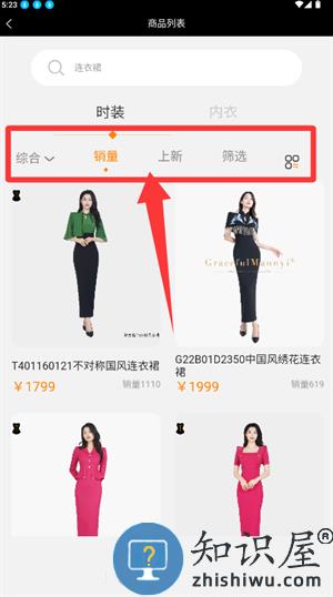 2、在时装分类内按销量排序,浏览热门商品列表。