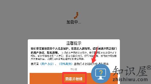 1、点击温馨提示里的同意并继续。