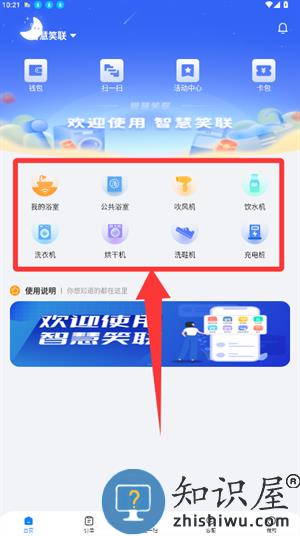 3、在首页选择浴室、洗衣机等功能,即可使用对应服务。