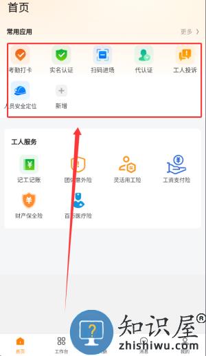 3、首页集成了考勤打卡记录实名身份验证二维码扫码进场代他人认证工人投诉通道及人员安全定位等管理功能。
