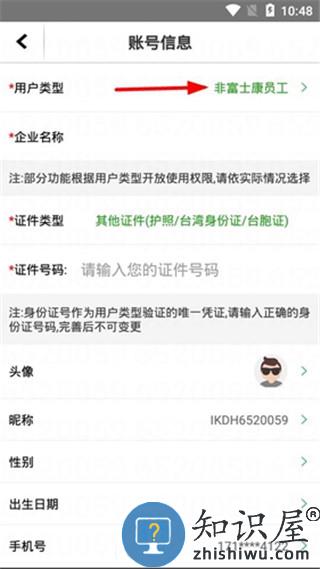 3、如果用户选择的是非富士康员工,则不能选择企业名称,我们点击用户类型