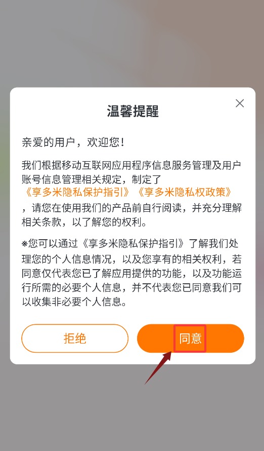 1、首次打开应用需点击确认弹窗协议,同意后方可进入主界面。