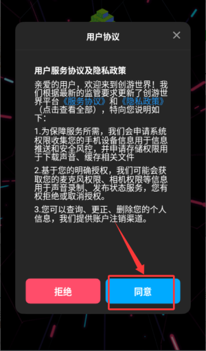 1、于用户协议弹窗中点选同意,随后进入登录选择页面。