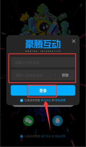 3、在界面输入手机号及验证码,勾选协议后登录完成验证。
