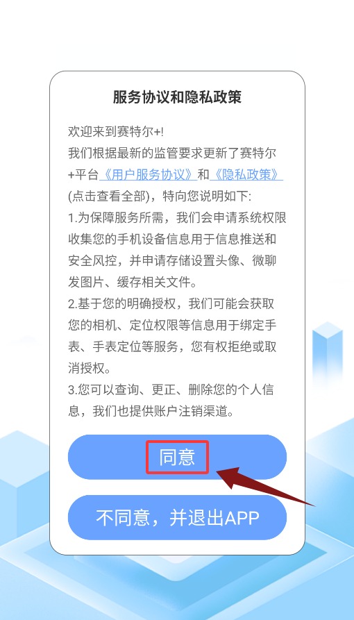 1、首次启动应用需点击确认协议弹窗,同意后方可进入登录界面。