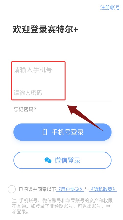 2、在登录页点击右上角注册按钮,即可跳转至新账号创建页。