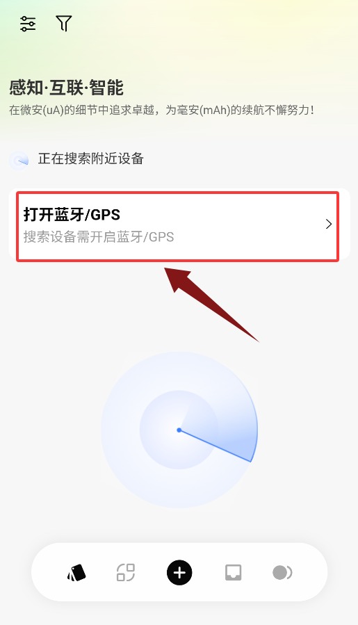 2、在首页下拉开启蓝牙与定位,系统将自动搜索附近设备。
