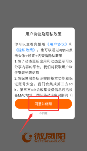 1、于用户协议弹窗中点选同意并继续,随后进入应用服务页面。