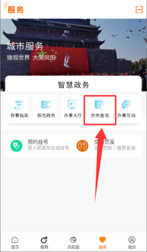 2、在服务页智慧政务板块,点击办件查询进入界面。