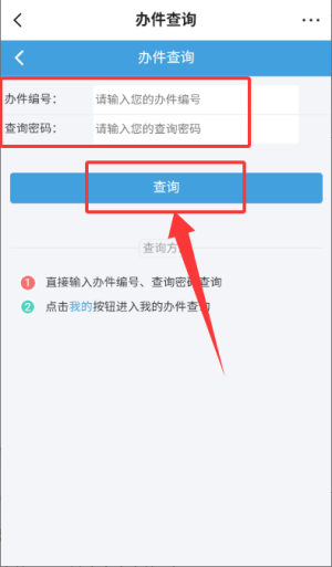 3、在办件查询页输入编号密码,点击查询查看进度。