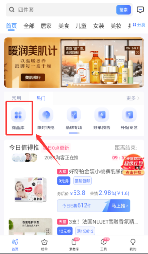2、在首页点击商品库选项,进入商品展示页面浏览。